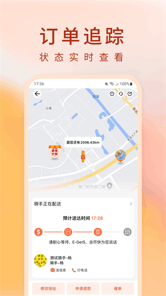 3、地图定位功能真是超赞,能让我实时查看配送员的位置,对美食的送达满心期待。