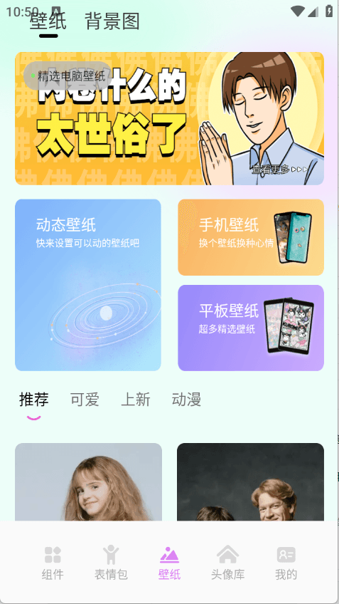 3. 这款软件不只是壁纸工具,还包含了各式各样的小组件、表情包、头像等内容供你使用。