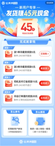 10次,据相关消息,运满满冷运为新注册的用户准备了三重轻礼: