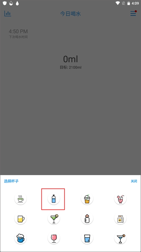 1、首选点击右边的“…”图标,选择你喝水的杯子以及喝水的容量并关闭下拉。