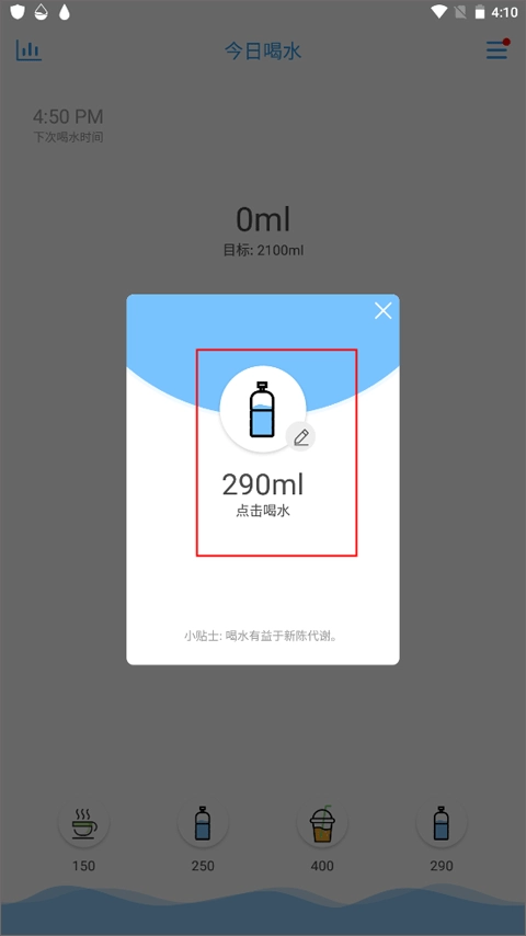 桌面插件支持:可在手机桌面添加小插件,方便快速查看饮水进度与打卡。