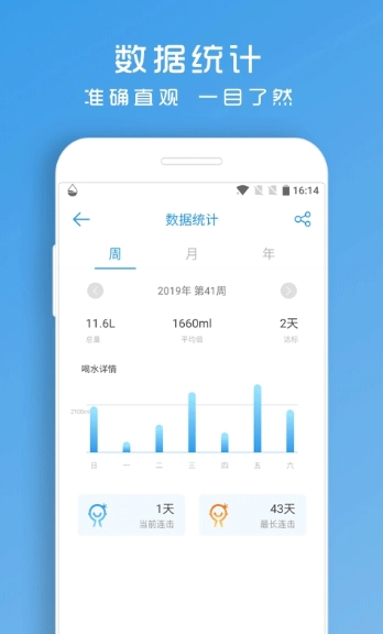4.数据统计直观清晰,支持长期记录与多维度分析,喝水情况一目了然。