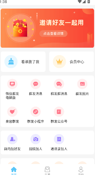 1、打开微粉清理,进入群发功能页面。
