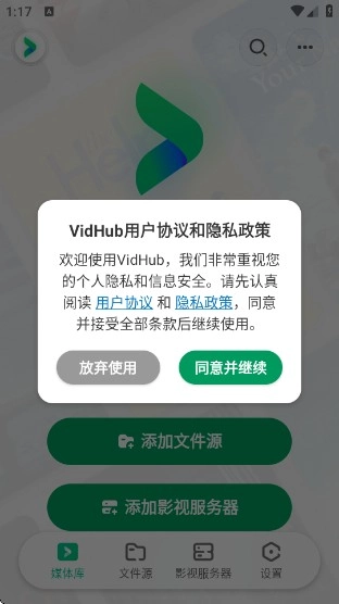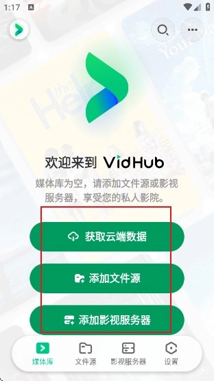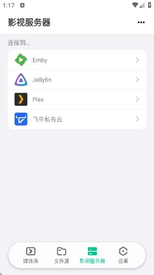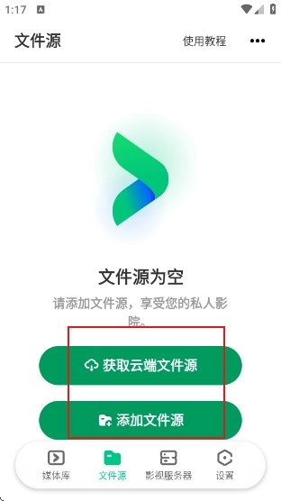 2、点击即可添加文件源或添加影视服务器。