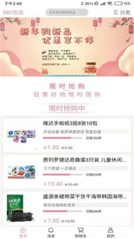 2、BB7优选软件每天精选百余款打折商品,限时抢购,从生活百货、美妆个护;