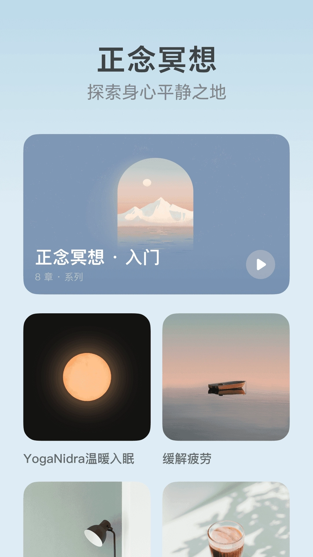 4、点击探索功能可浏览更多优质减压音乐,从中挑选适合自己的进行聆听;