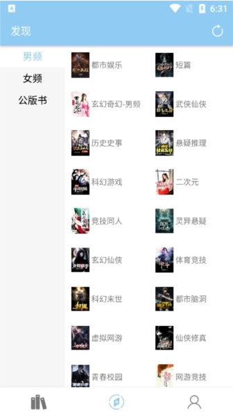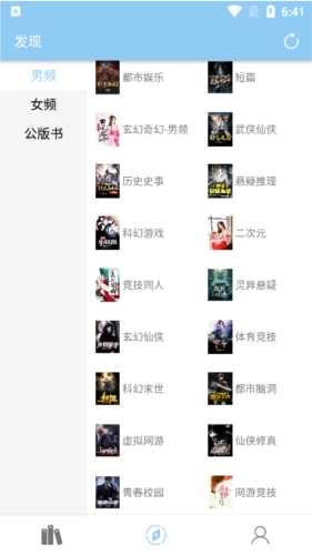 1、打开软件后,点击底部中间的板块,就能看到多种类型的小说。
