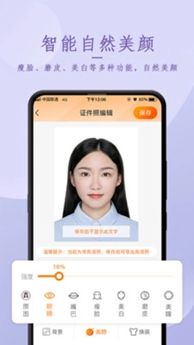 这款软件搭载了业内领先的AI图像识别算法,性能强劲,为您打造完美证件照提供坚实保障。它能自动裁切头像以适配照片规格,还具备自动校正、边界模糊修复、光线自平衡以及适配冷暖环境色等功能。让您体验焕然一新的感觉,助力您简单、轻松地拍摄出自然美颜的专业证件照!