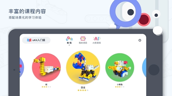 uKitEDU是一款专门为儿童设计的编程教育与机器人搭建应用,它融合了丰富的课程内容和AI资源库,帮助孩子轻松感受图形化编程的魅力。该应用通过场景化、游戏化的形式引导孩子探索学习,激发他们的无限创意,让孩子享受自定义编辑、搭建、编程和创新的乐趣!如果你也有这方面的需求,那就赶紧来试试吧!