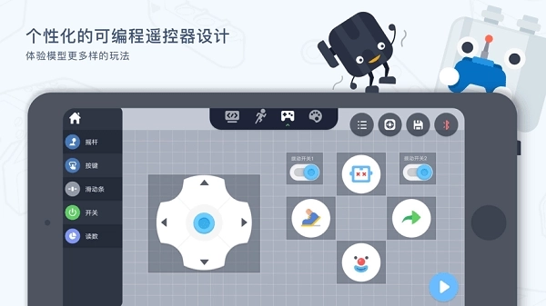 3、个性遥控创作:支持自定义编程的遥控器设计,为模型拓展更多玩法可能,助力孩子尽情释放创造力。