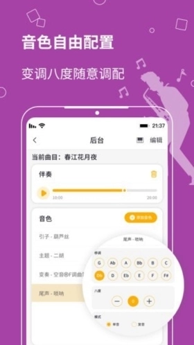 专为音乐练习与现场演出打造的用户界面,通过曲目列表来规整个人的音色、伴奏及乐谱,让所有内容都井然有序。还能根据需求编排音色,即便一秒变调也能轻松达成。