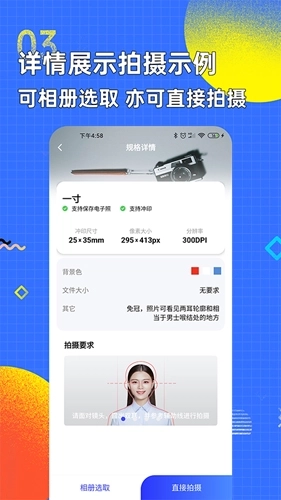 尺寸规格丰富且适用范围广:涵盖多样的尺寸标准,可适配护照、驾照、学生证等各类证件照的拍摄需求,全方位满足不同场景的使用要求。