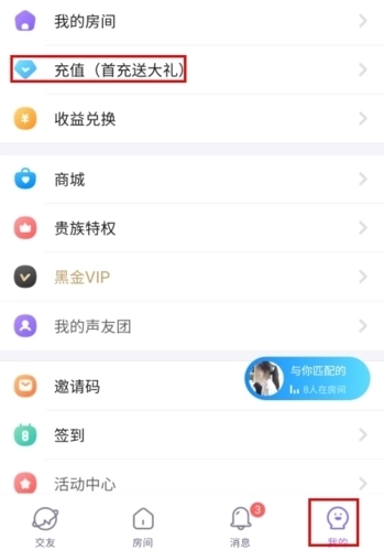 1、在我的页面中点击充值按钮;