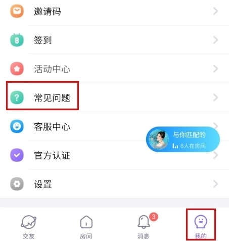 1、在我的页面中点击常见问题按钮;