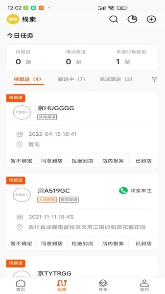 1、你可以在该车百灵软件内查看待办任务,了解每个待办客户的详情,进行认领和处理;