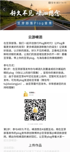 豆芽部落有线上plog征集大赛、线下免费深度体验游等各种有趣活动,还准备了现金奖励、摄影器材等奖品福利,期待你的参与!