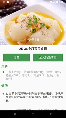 -按月细分精确到天14个阶段,充分考虑每个年龄阶段宝贝饮食特征,针对性提供营养食谱。精选各种功效食谱,增高、开胃、免疫力、营养、视力、益智等。