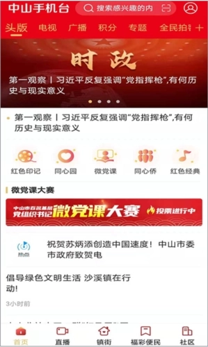 1,锁定中山新闻推出的24小时新闻直播,及时跟进时事热点。