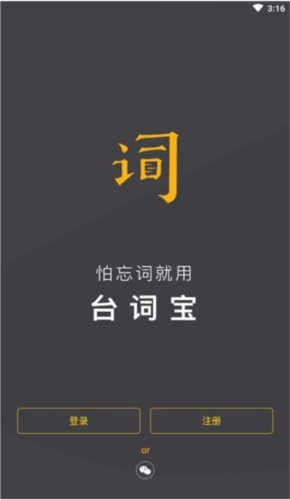 1、第一步是打开台词宝,接着选择登录或注册该软件,用户能够通过微信一键登录;