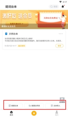 2、接着进入主页并点击加号,就能看到包含新建文本、新建文件夹和文本导入在内的三大功能。