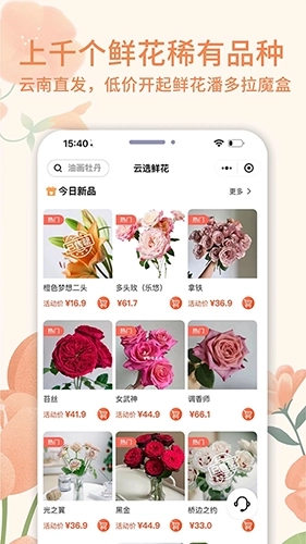 云选鲜花批发软件,是一款能让我自由选购鲜花的应用程序。这里汇聚了各种各样的鲜花,价格低得令人惊喜。它是花店首选的批发平台,致力于让利于花店和种植方。在“云选鲜花”平台,大品牌信誉可靠,优质花材直接供应,物流直接配送到店,并且没有繁杂的打包费用。