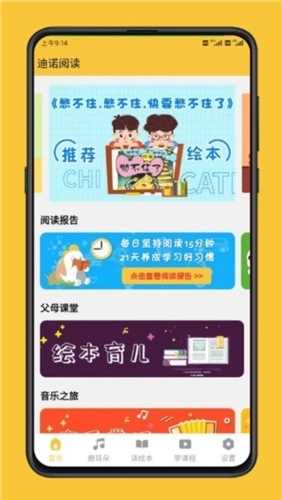 迪诺阅读是深圳市乐智教育科技有限公司研发的儿童教育学习软件。它为用户提供优质的幼儿教育内容,助力孩子成长。家长可以陪伴宝宝一起学唱原创儿歌,认识简单的英语单词和汉字,以此提升孩子的学习兴趣。此外,该软件还具备内容推送、用户管理、设备管理等功能。借助迪诺阅读,爸爸妈妈能够查看宝宝在家的阅读书籍和学习课程情况,让早教更加简单高效!