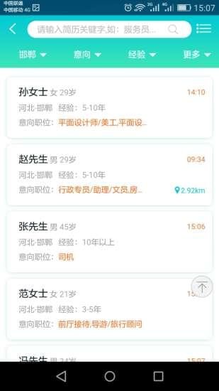 企业招聘:发布、管理招聘信息,任意搜索简历库,接收求职意向, 在线通知面试。