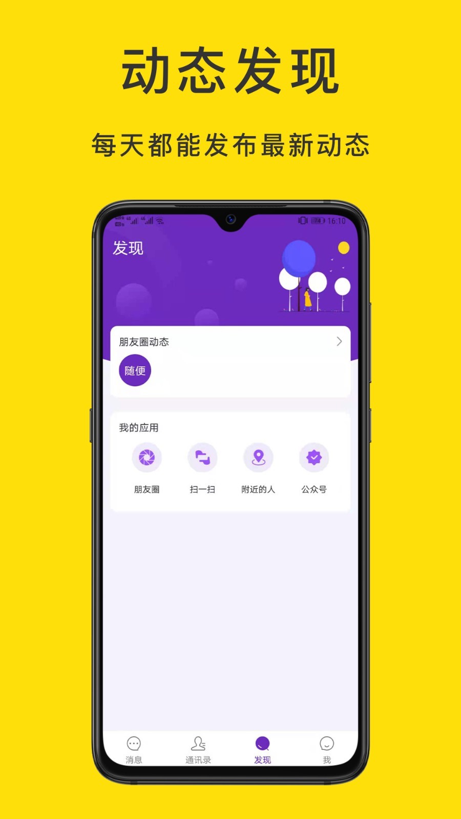 3、动态圈,发送图片与好友分享自己遇到的美好事物,用来记录生活。
