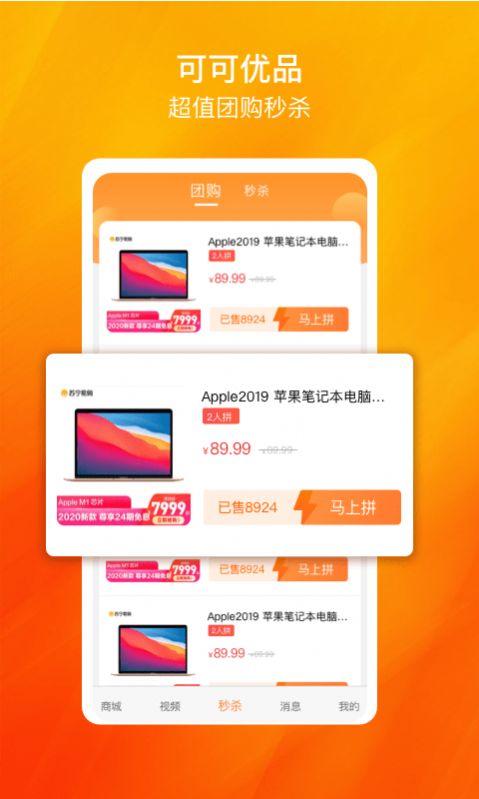 1、全场商品陆家到底,每日多个时段还有秒杀与团购活动,尽情抢购,不容错过。