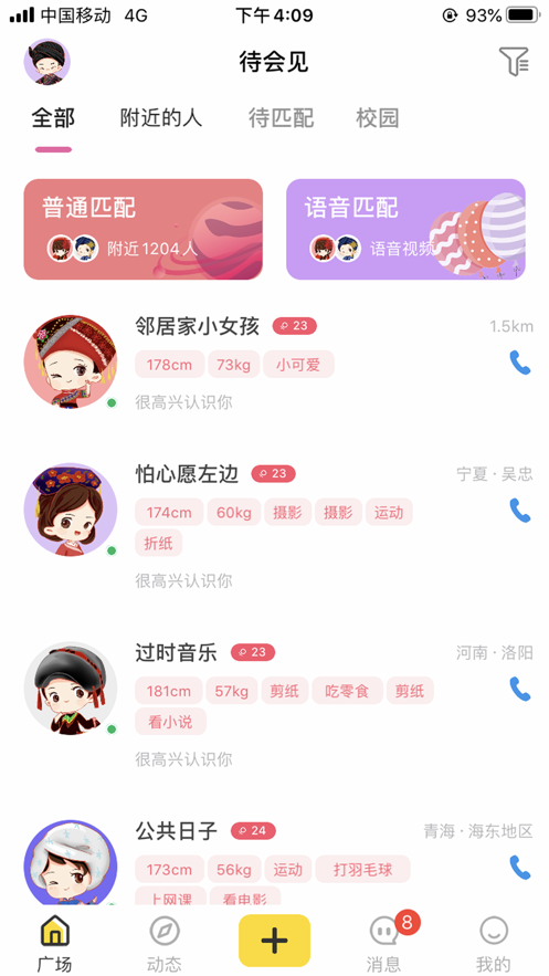 待会见,在这里我们可以遇到和自己兴趣相投的朋友们的,让你再也不会一个人感到孤单了,其中的用户们都是来自五湖四海的,遍布各地,大家可以尽情的放松自己的,如果遇到自己的一见钟情的异性朋友,可以大胆的去和对方打招呼的,不用感到害羞的。喜欢的朋友,可以下载的。