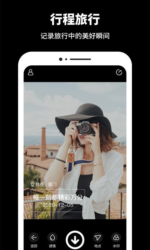 2、行程旅行,记录旅行中的美好瞬间,一键拍摄;