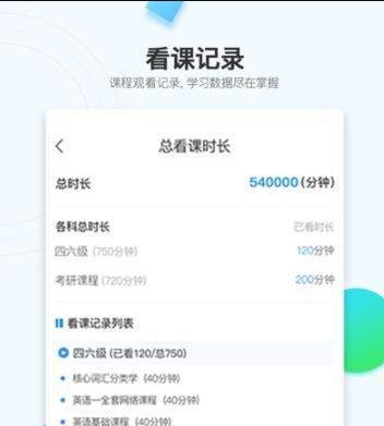 3、课程观看的记录也是可以去看到的,学习的数据尽在掌握。