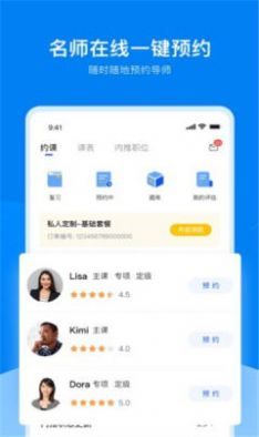 1、预约名师,选择你喜欢的名师,预约他的课程,满足用户不同时间段上课的需求;