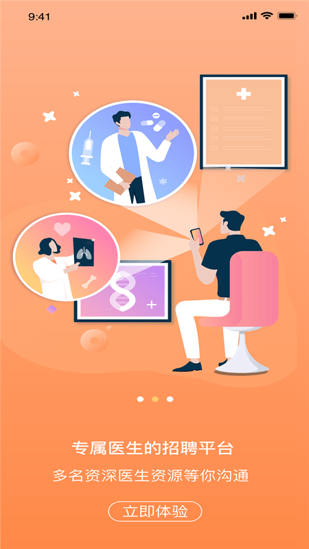3、专属医生的招聘平台,汇聚大量医生资源,在线沟通交流,精准匹配。