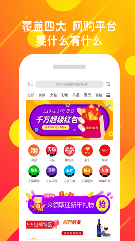 3、各种类型商品应有尽有,直接在线搜索想购买的商品即可,超多优惠福利,让你最低价购好物。