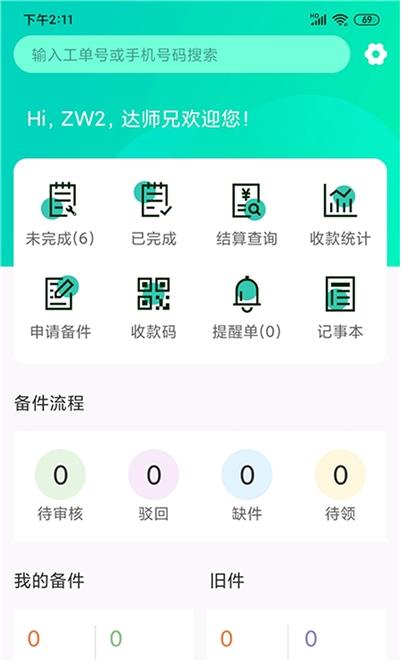 1、可以随时查找不同的订单,支持输入工单号或者手机号码搜索。
