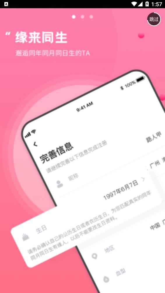 1、基于同年同月同日生打造的交友平台,轻松找到有缘好友,在线聊天互动,分享个人生活。