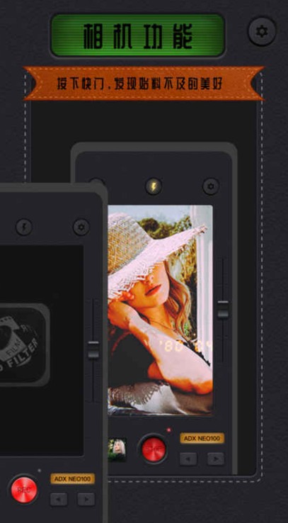 2、相机功能,真实质感光效,让用户可以打造完全不同年代感的照片。
