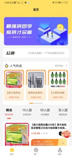 1、是一个涵盖各类优惠拼团购物的移动端网络购物平台。