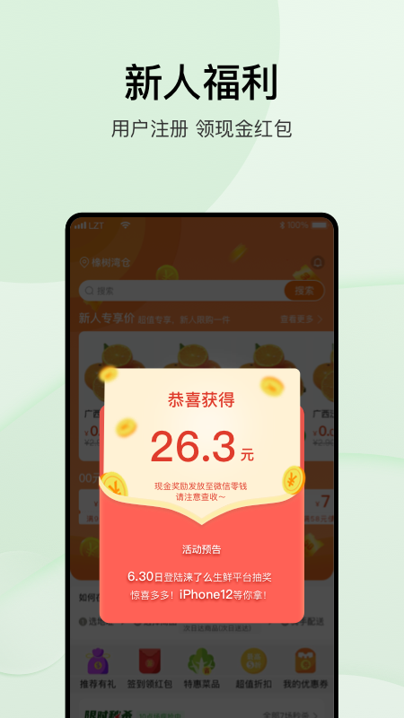 3、让用户足不出户,手机上随时随地找到质优价廉的生鲜。