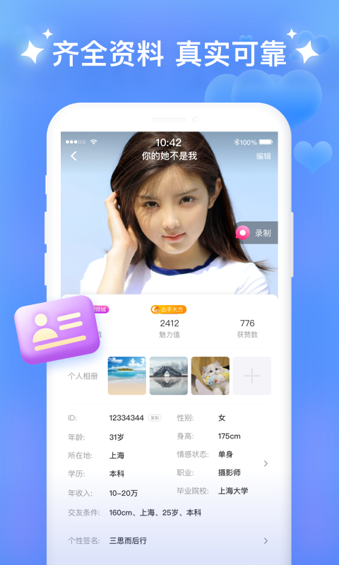 3、用户的资料是很齐全的,真实的资料经过了认证可以放心。