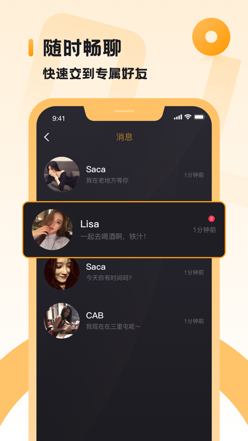 1、这里主打同城交友玩法,发现你身边的异性,不墨迹,直接约在线下见面。