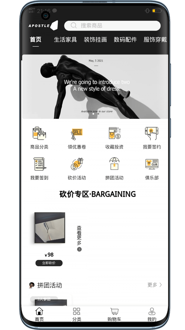 2、拼团购物:应用支持多人之间的拼团购物享受到的优惠更多。