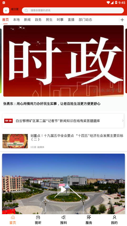 5、是白云鄂博矿区融媒体移动服务平台,平台拥有新闻,视听,问政,服务等等板块内容。