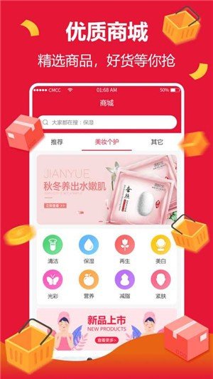 2、新品推送速度更快,上市特价非常诱人,大量美妆、日用品、零食...都可以低价特卖。
