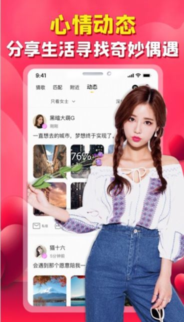 3、分享自己的生活瞬间,浏览附近人的动态,发现身边有趣的人。