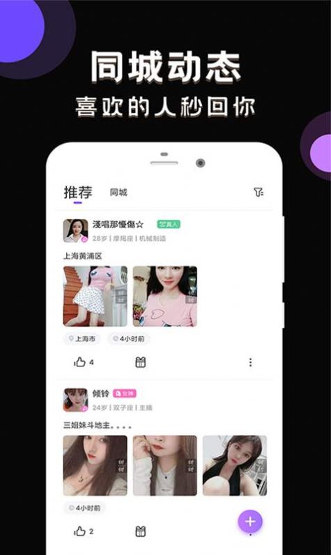 4、一款方便交友互动的娱乐APP,支持同城交友,可以在线聊天,语音交互。