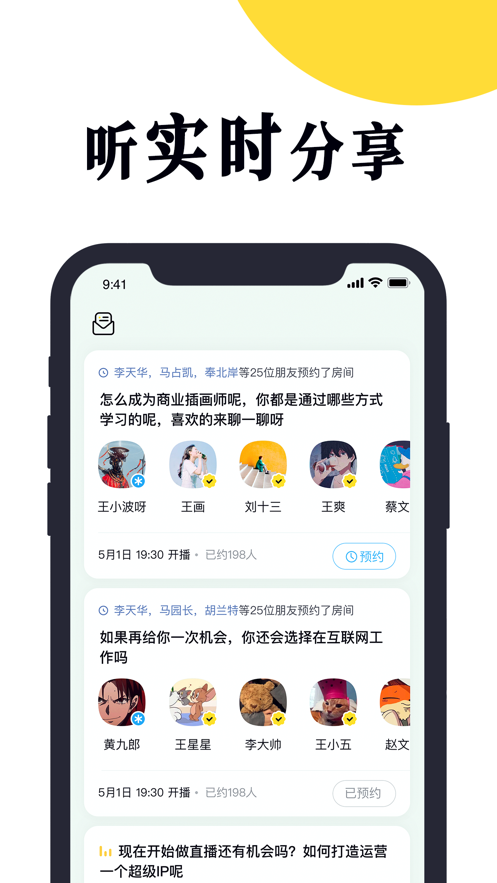 3、在牛耳朵中的牛人会通过语音聊天房间与大家深度分享一些经验、探讨一些话题。