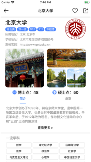 用户在这款软件内还能详细的查询想去院校的专业信息、学习状况、师资力量、学校环境等等各种信息,让你在未进校园之前就能完美的了解想去的学习!