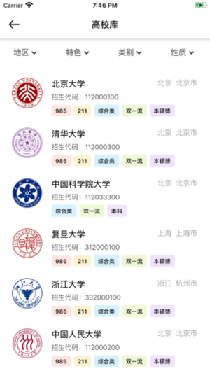 2、提供多项综合筛选功能,让用户在线查找自己喜欢的大学。
